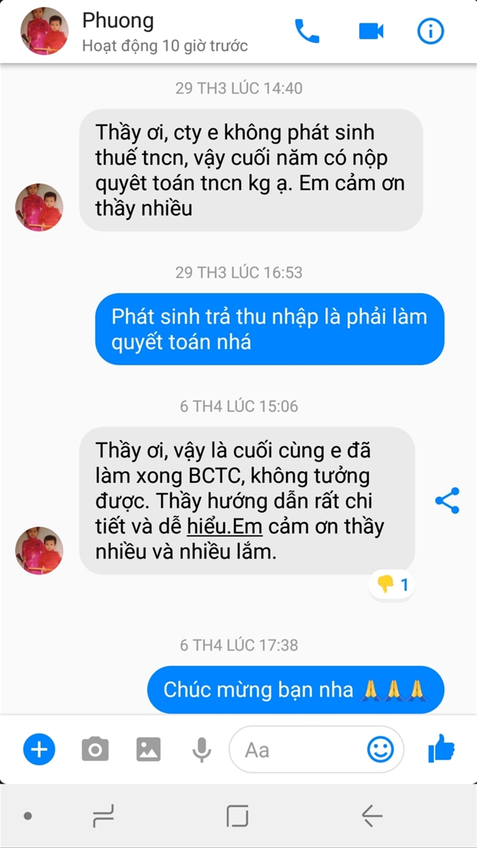 Bạn luôn có được sự HỖ TRỢ tốt nhất từ giảng viên, mọi thắc mắc bạn có thể kết nối với qua điện thoại, email, facebook, zalo, teamviewer... Kết thúc khóa học bạn sẽ có được lượng kiến thức thực tế mà một kế toán bình thường phải mất khoảng 1 năm làm việc mới tích lũy được.