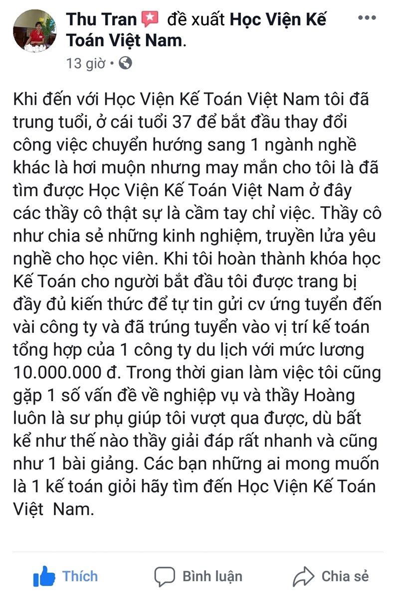 Hơn 15 năm kinh nghiệm làm kế toán và huấn luyện kế toán thực tế.