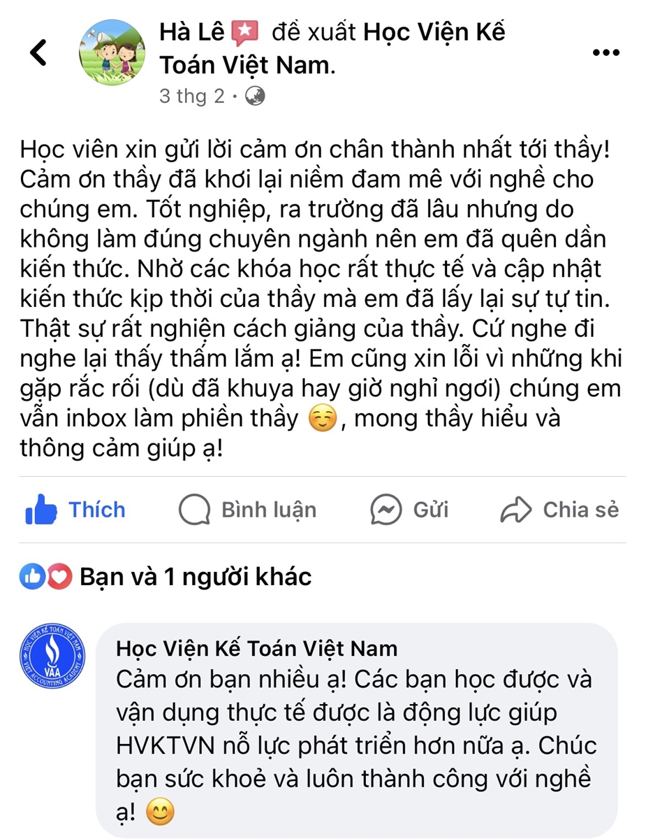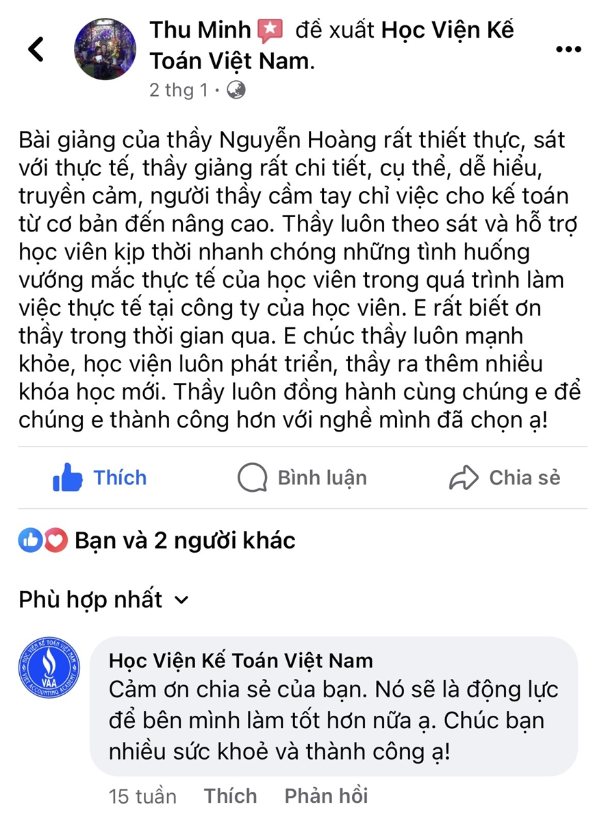 Hơn 15 năm kinh nghiệm làm kế toán và huấn luyện kế toán thực tế.